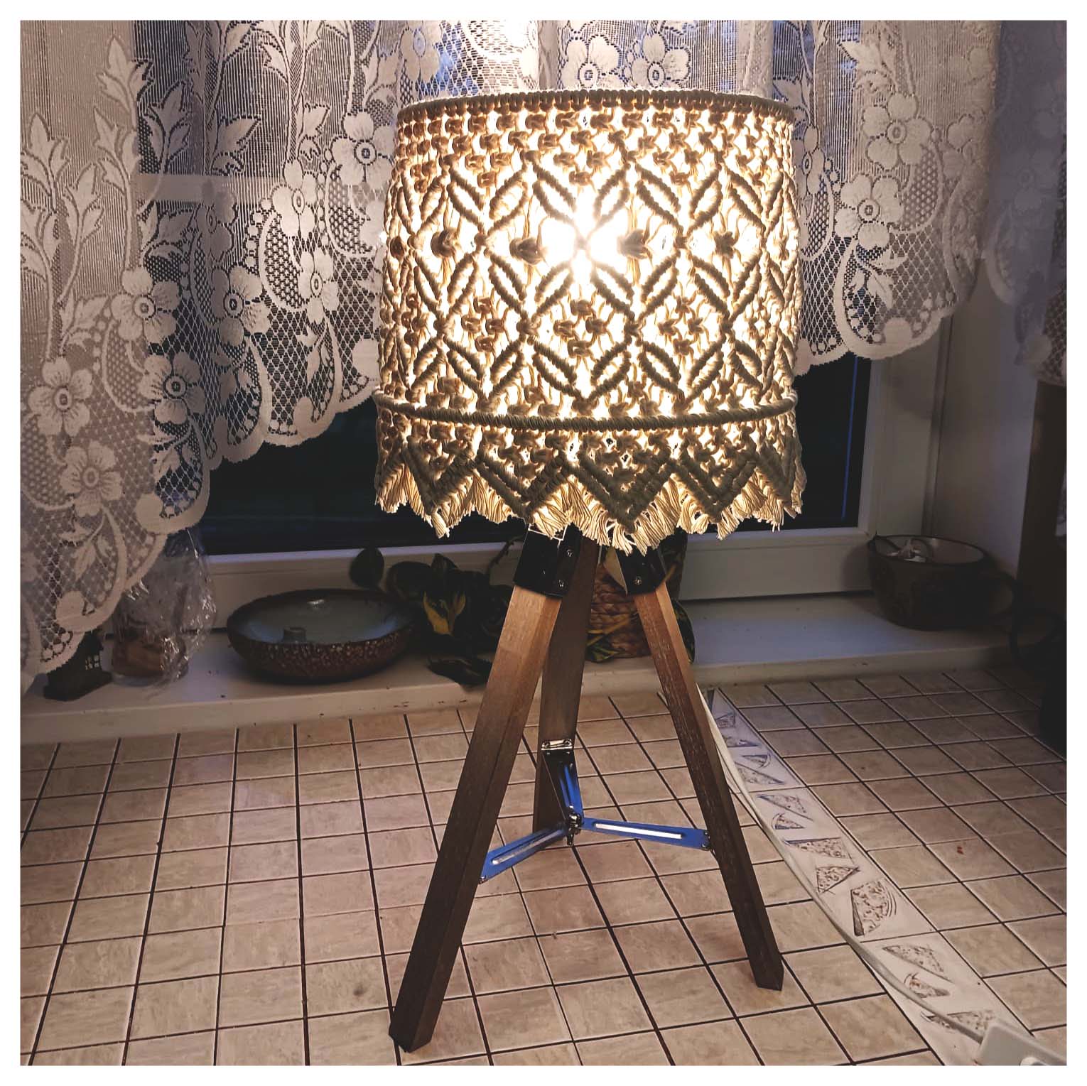 varjust välja traatrõngad, puhastasin need ja värvisin valgeks. Uue lambivarju punusin makrameetehnikas