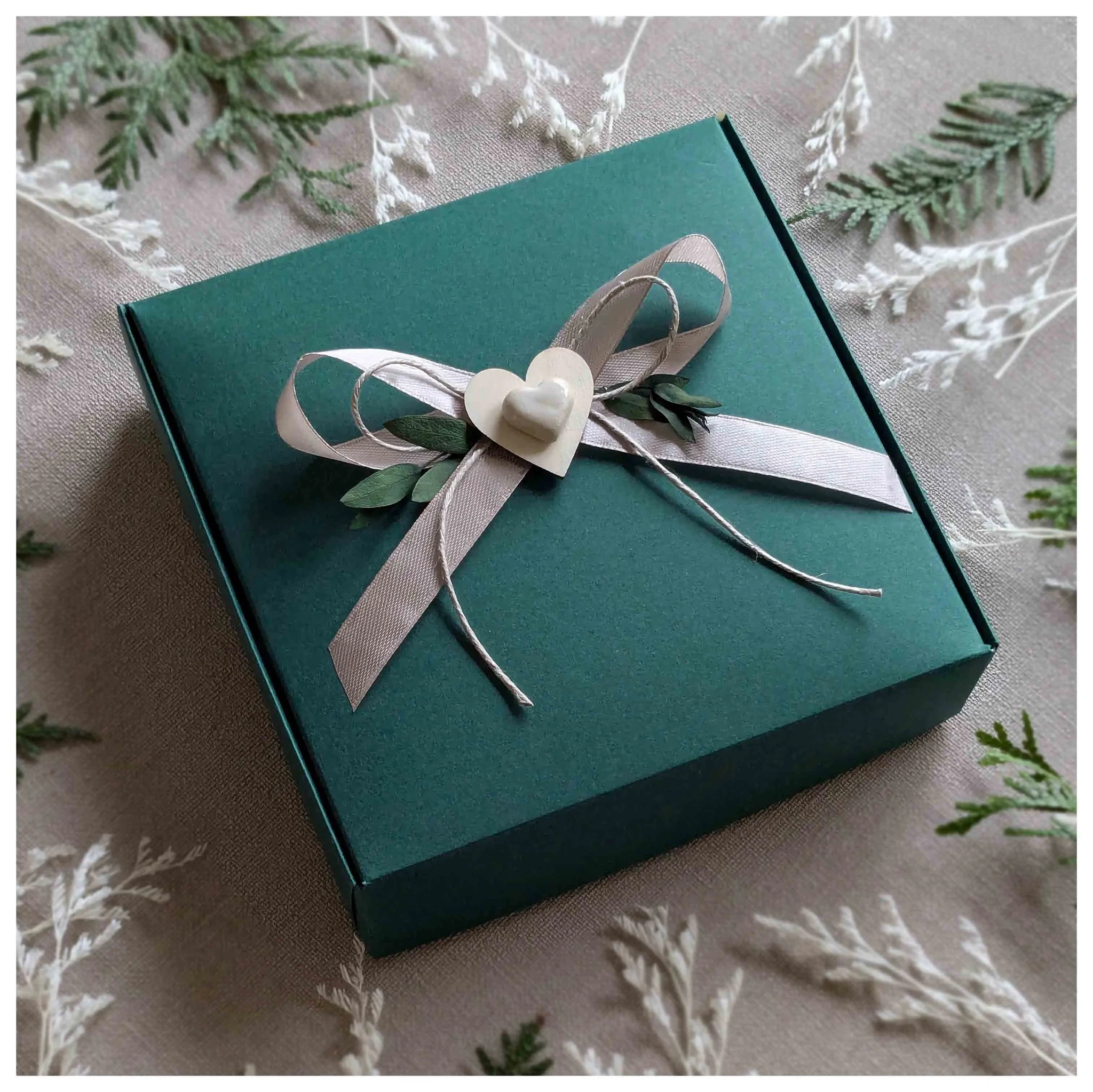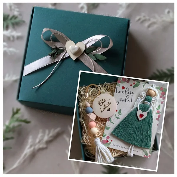 Kogu komplekt on pakitud kaunisse rohelisse kinkekarpi (15 × 15 cm) – valmis kohe kingituseks.