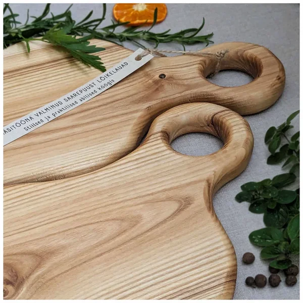 Lõikelauad on töödeldud loodusliku viimistlusõliga, mis kaitseb pinda ja pikendab laua eluiga. Lisaks funktsionaalsusele on see lõikelaua komplekt ka stiilne serveerimisalus, sobides suurepäraselt jõululaua kaunistamiseks või suupistete serveerimiseks.