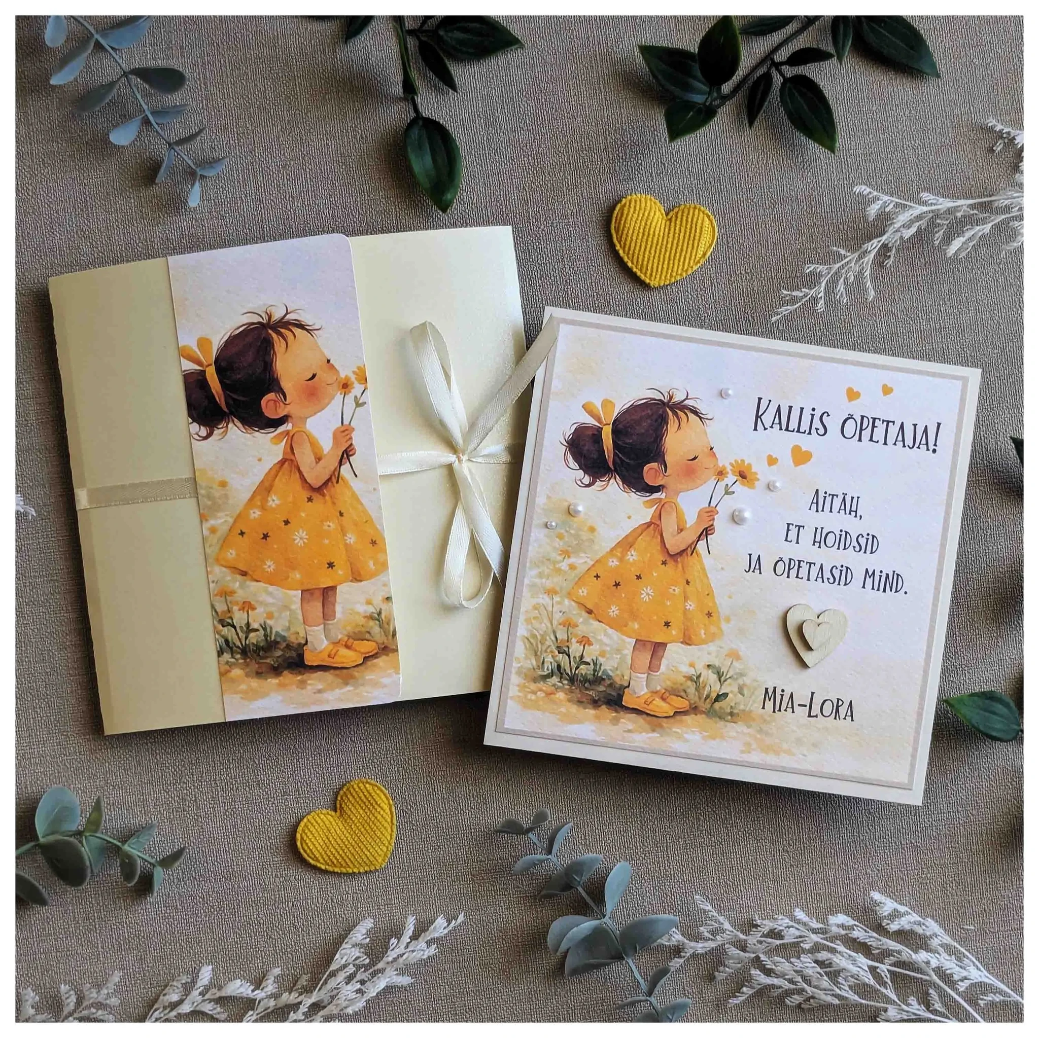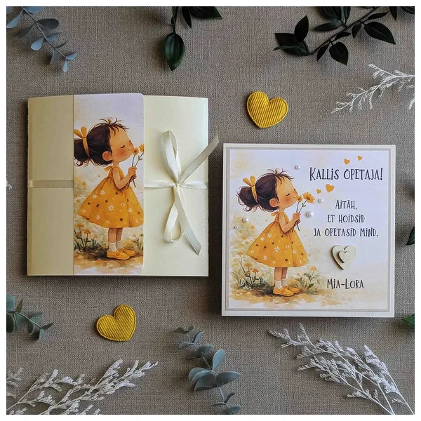 See kaart on väike, kuid südamlik kingitus õpetajale. Sobib kinkimiseks koos lillede, šokolaadi või väikese kingitusega lasteaia lõpetamise päeval.